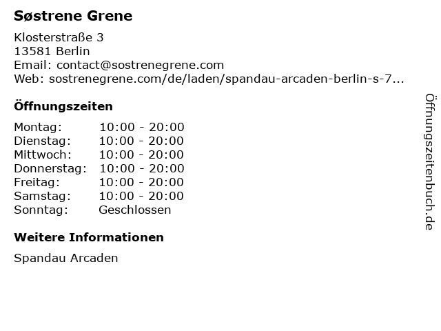 | Öffnungszeiten Søstrene Grene in Berlin anzeigen | |