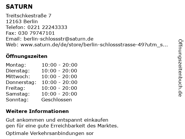 Öffnungszeiten SATURN in Berlin anzeigen | |