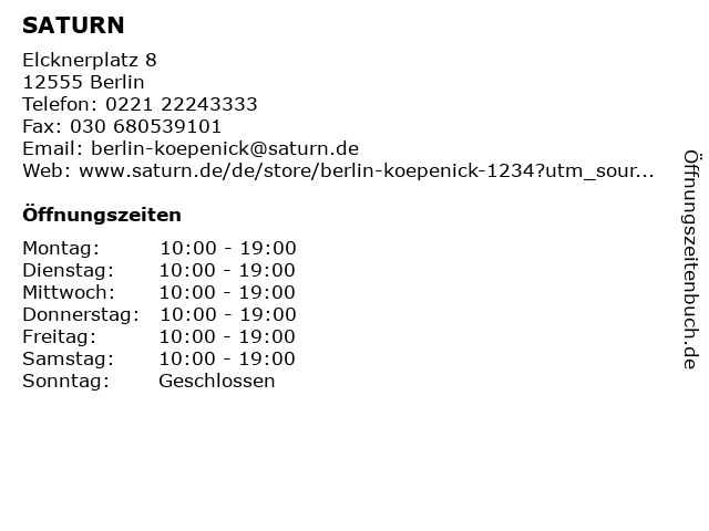 Öffnungszeiten SATURN in Berlin anzeigen | |