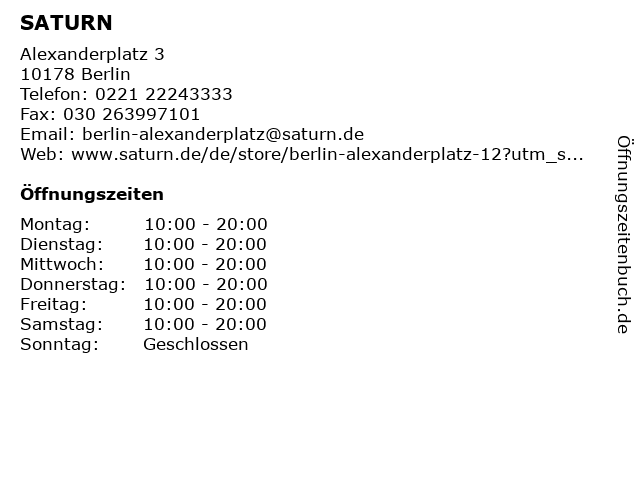 Öffnungszeiten SATURN in Berlin anzeigen | |