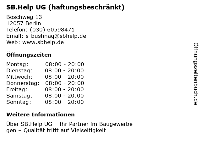 | Samstag | 08:00-20:00 |