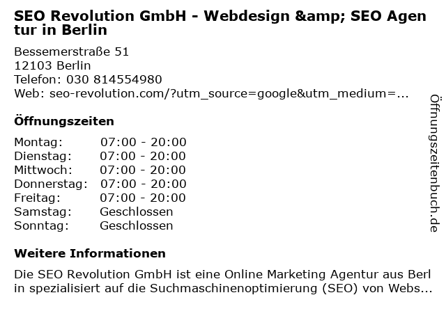Branchen & Suchbegriffe zu SEO Revolution GmbH - Webdesign & SEO Agentur in Berlin:agentur, marketingberatung, revolution, seo, web-consultant, webdesign, webdesigner, webentwickler |