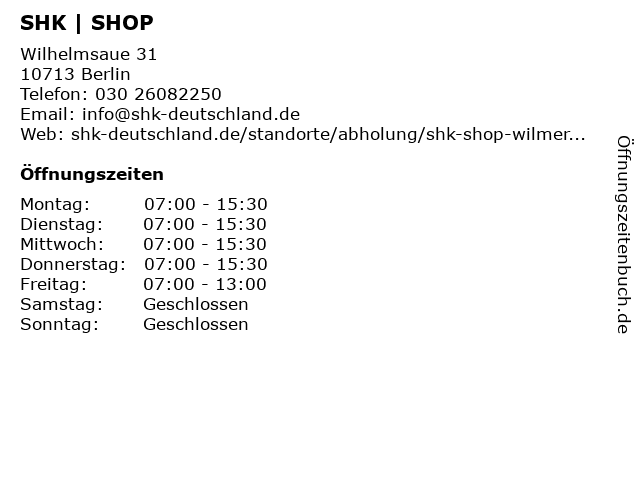 | Öffnungszeiten SHK | SHOP in Berlin anzeigen | |