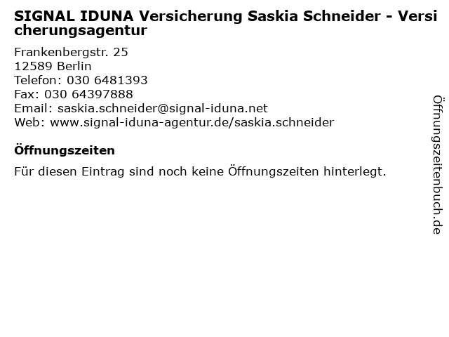 | SIGNAL IDUNA Versicherung Saskia Schneider - Versicherungsagentur anrufen | |