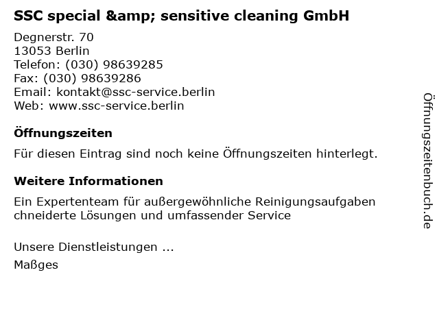 | SSC special & sensitive cleaning GmbH anrufen | |