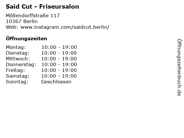 | Öffnungszeiten Said Cut - Friseursalon in Berlin anzeigen | |