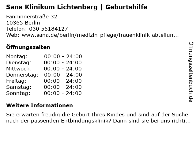Branchen & Suchbegriffe zu Sana Klinikum Lichtenberg | Geburtshilfe:geburtshilfe, klinikum, sana |