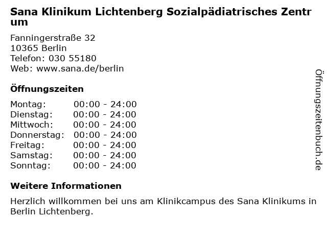 Branchen & Suchbegriffe zu Sana Klinikum Lichtenberg Sozialpädiatrisches Zentrum:klinikum, sana, sozialpädiatrisches, zentrum |