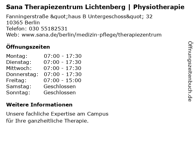 Branchen & Suchbegriffe zu Sana Therapiezentrum Lichtenberg | Physiotherapie:physiotherapie, sana, therapiezentrum |