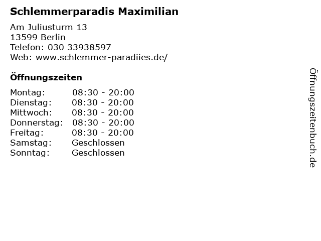 | Öffnungszeiten Schlemmerparadis Maximilian in Berlin anzeigen | |