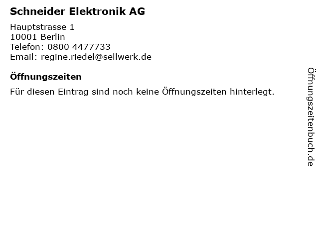 | Öffnungszeiten Schneider Elektronik AG in Berlin anzeigen | |
