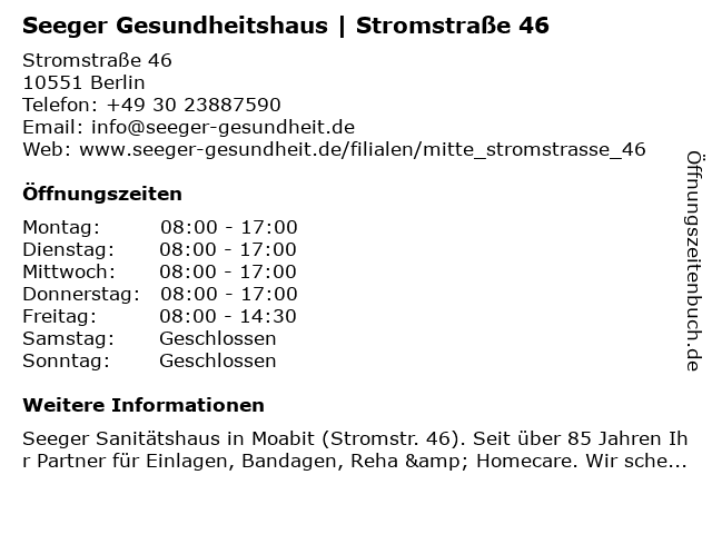 Branchen & Suchbegriffe zu Seeger Gesundheitshaus | Stromstraße 46:46, bandagen, elektromobile, gehhilfen, gesundheitshaus, homecare, kompressionsstümpfe, medizin-technik, orthesen, orthopädieschuhtechnik, orthopädietechnik, orthopädische einlagen, reha-technik, rollatoren, sanitätshaus, sanitätshaus mitte, sanitätshaus moabit, sanitätshaus seeger, sanitätshaus stromstraße 46, seeger, seeger - das gesundheitshaus, stromstraße, stützstrümpfe |