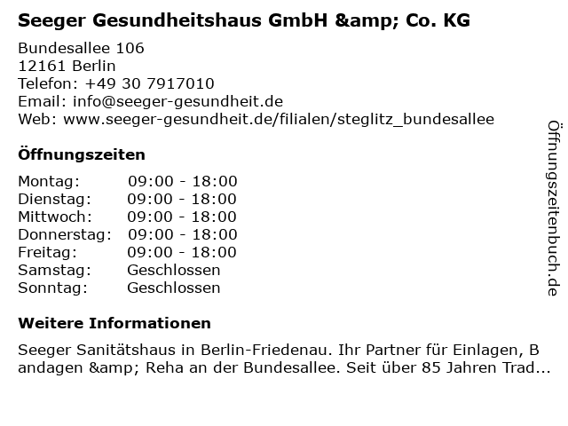 Branchen & Suchbegriffe zu Seeger Gesundheitshaus GmbH & Co. KG:bandagen, elektromobile, gehhilfen, gesundheitshaus, homecare, kompressionsstrümpfe, orthesen, orthopädieschuhtechnik, orthopädietechnik, orthopädische einlagen, prothesen, reha- und medizintechnik, rollatoren, rollstühle, sanitätshaus, sanitätshaus berlin, sanitätshaus berlin-steglitz, sanitätshaus bundesallee, sanitätshaus seeger, seeger, seeger - das gesundheitshaus |