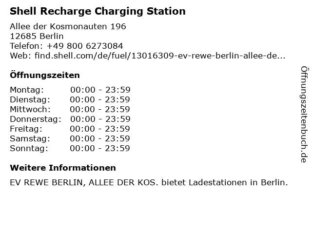 Öffnungszeiten Shell Recharge Charging Station in Berlin anzeigen