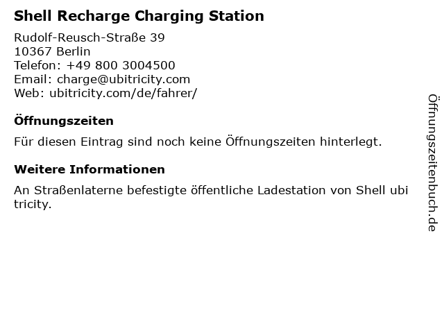 Shell Recharge Charging Station in Berlin | Telefonnummer, Öffnungszeiten und Adresse