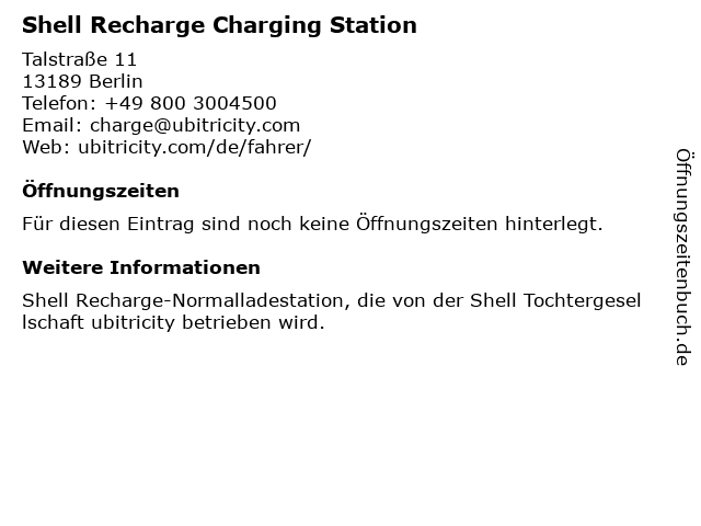 Shell Recharge Charging Station in Berlin | Telefonnummer, Öffnungszeiten und Adresse