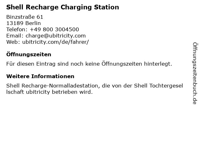 Shell Recharge Charging Station in Berlin | Telefonnummer, Öffnungszeiten und Adresse