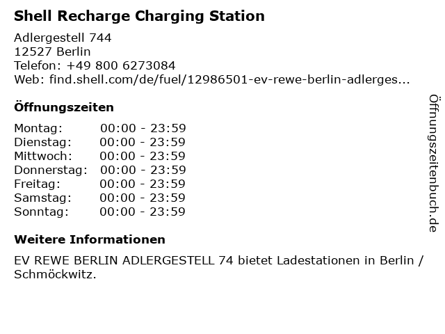 Öffnungszeiten Shell Recharge Charging Station in Berlin anzeigen