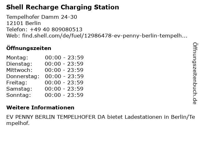 Shell Recharge Charging Station in Berlin | Telefonnummer, Öffnungszeiten und Adresse