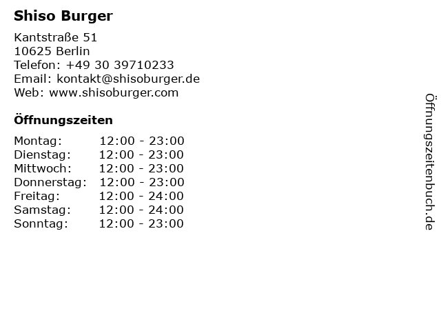 | Öffnungszeiten Shiso Burger in Berlin anzeigen | |