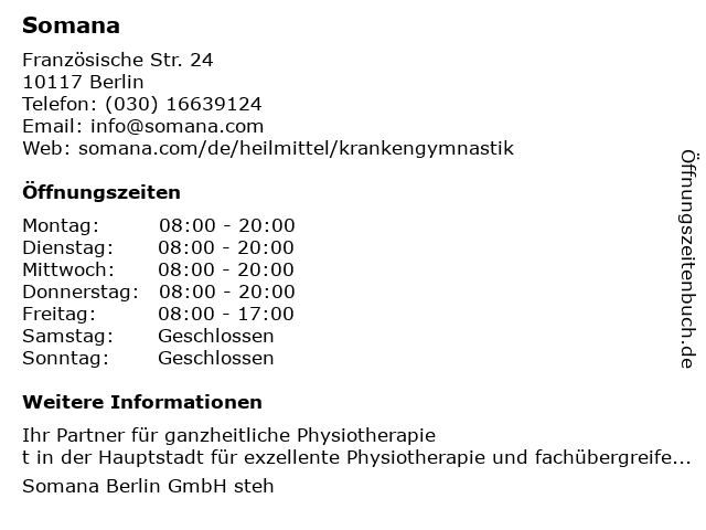 | Öffnungszeiten Somana in Berlin anzeigen | |