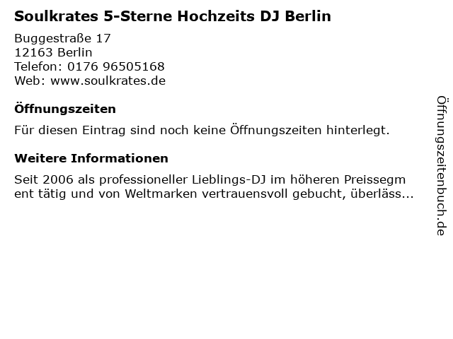 | Soulkrates 5-Sterne Hochzeits DJ Berlin anrufen | |