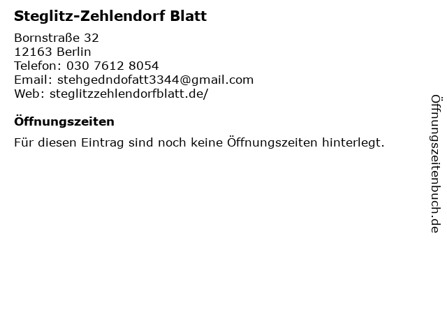 | Öffnungszeiten Steglitz-Zehlendorf Blatt in Berlin anzeigen | |