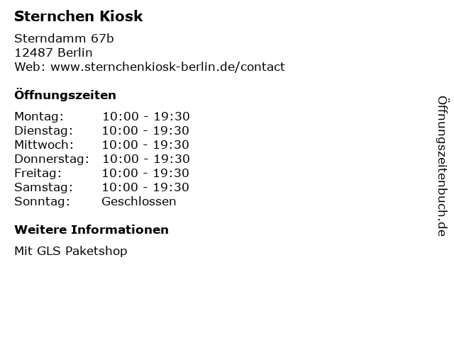 | Öffnungszeiten Sternchen Kiosk in Berlin anzeigen | |