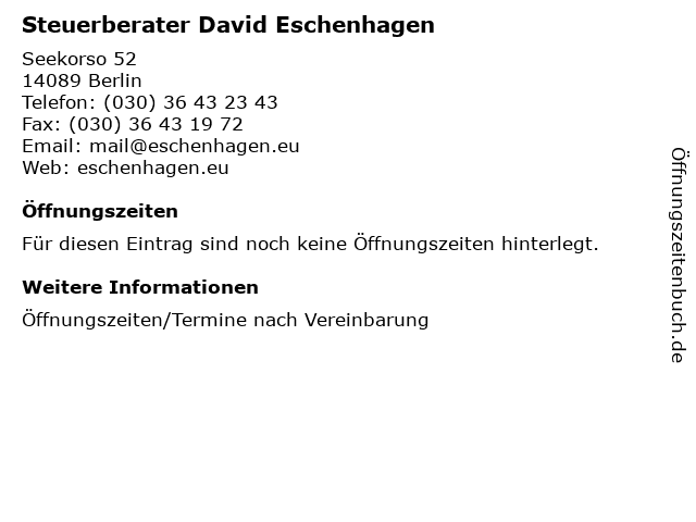 | Steuerberater David Eschenhagen anrufen | |