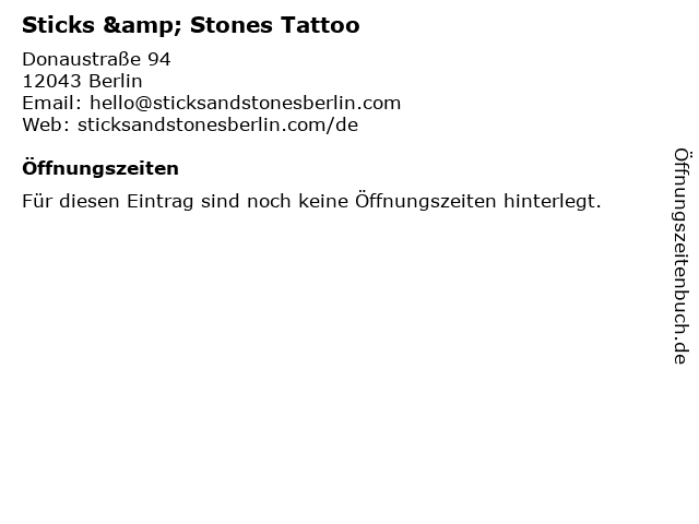 | Öffnungszeiten Sticks & Stones Tattoo in Berlin anzeigen | |