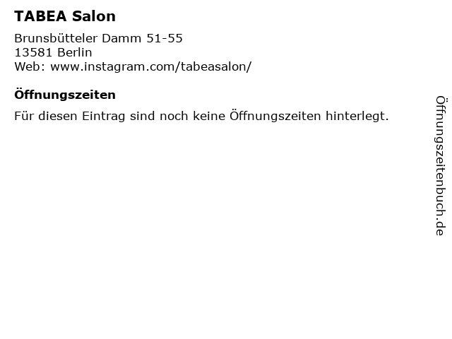 | Öffnungszeiten TABEA Salon in Berlin anzeigen | |