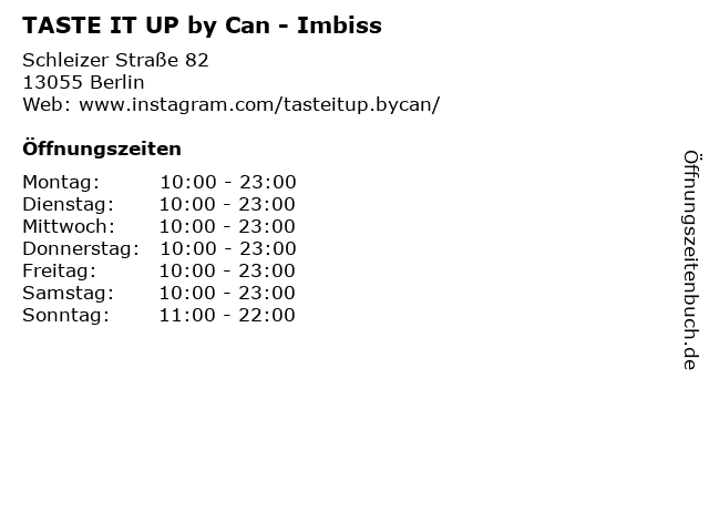 Öffnungszeiten TASTE IT UP by Can - Imbiss in Berlin anzeigen | |