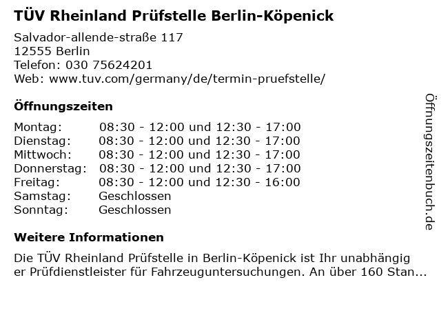 Branchen & Suchbegriffe zu TÜV Rheinland Prüfstelle Berlin-Köpenick:köpenick, prüfstelle, rheinland, tüv |