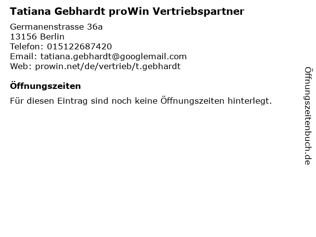 | Tatiana Gebhardt proWin Vertriebspartner anrufen | |
