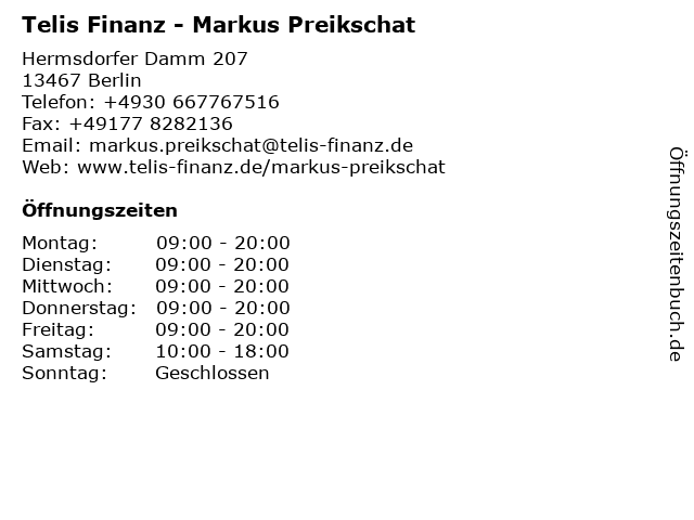 2 Zahnarztpraxis Dr. Bettina Kollehn Dr. Markus Kollehn (Entfernung: 4,95 km) Ruppiner Chaussee 331, 13503 Berlin 3 Versicherungsagentur Markus Morgenstern (Entfernung: 5,70 km) Schulzendorfer Straße 101, 13503 Berlin 6 |