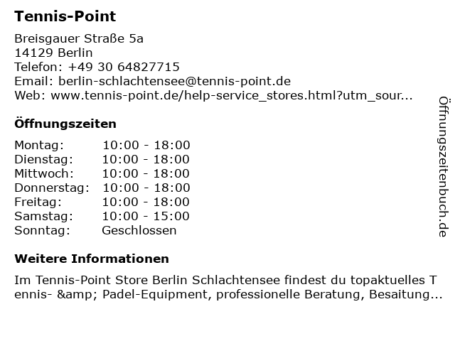Öffnungszeiten Tennis-Point in Berlin anzeigen | |