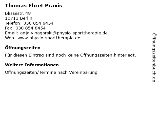 | Öffnungszeiten Thomas Ehret Praxis in Berlin anzeigen | |