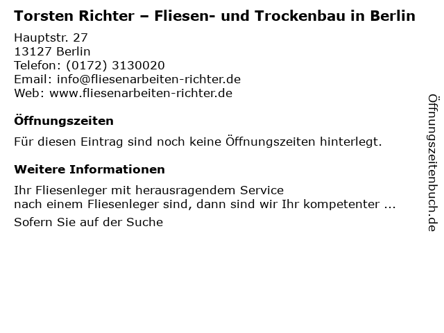 | Torsten Richter – Fliesen- und Trockenbau in Berlin anrufen | |