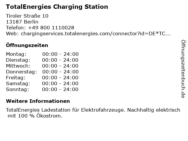 TotalEnergies Charging Station in Berlin | Telefonnummer, Öffnungszeiten und Adresse