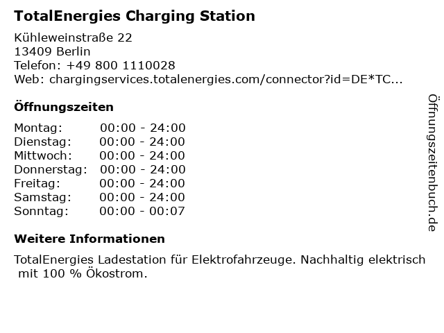 TotalEnergies Charging Station in Berlin: Telefonnummer, Öffnungszeiten und Adresse