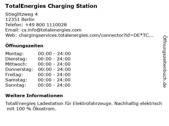 Öffnungszeiten TotalEnergies Charging Station in Berlin anzeigen