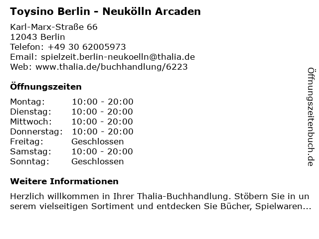 Branchen & Suchbegriffe zu Toysino Berlin - Neukölln Arcaden:arcaden, bestseller, bookshop, buchhandlung berlin, buchladen, bücher, ebooks, neukölln, spielwaren, thalia berlin, thalia buchhandlung, toysino |