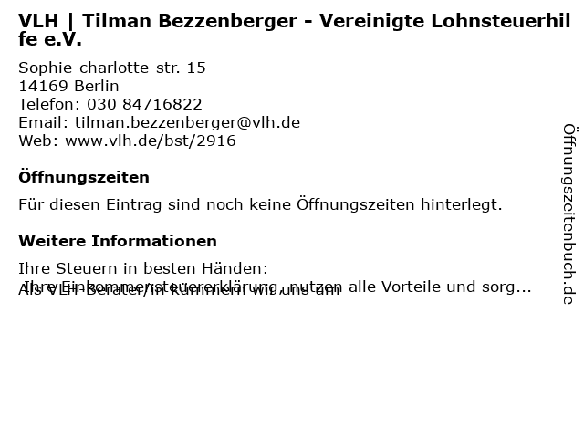 | VLH | Tilman Bezzenberger - Vereinigte Lohnsteuerhilfe e.V. anrufen | |
