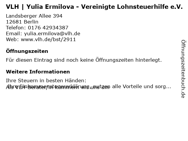 | VLH | Yulia Ermilova - Vereinigte Lohnsteuerhilfe e.V. anrufen | |