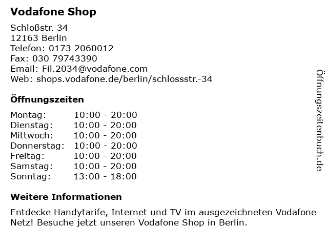 | Öffnungszeiten Vodafone Shop in Berlin anzeigen | |