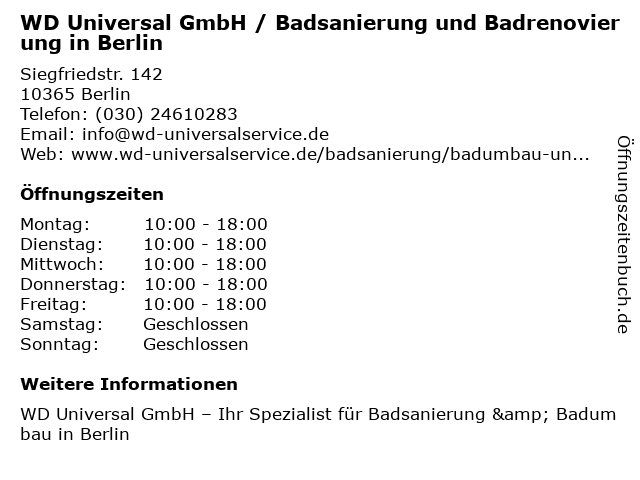 Branchen & Suchbegriffe zu WD Universal GmbH / Badsanierung und Badrenovierung in Berlin:altersgerechte bäder, altersgerechte sanierungen, bad-modernisierung, badrenovierung, badrenovierungen, badsanierung, badsanierungen, badumbau, barrierefreie bäder, hausrenovierungen, haussanierungen, universal, wd, wohnungsrenovierung, wohnungssanierungen |