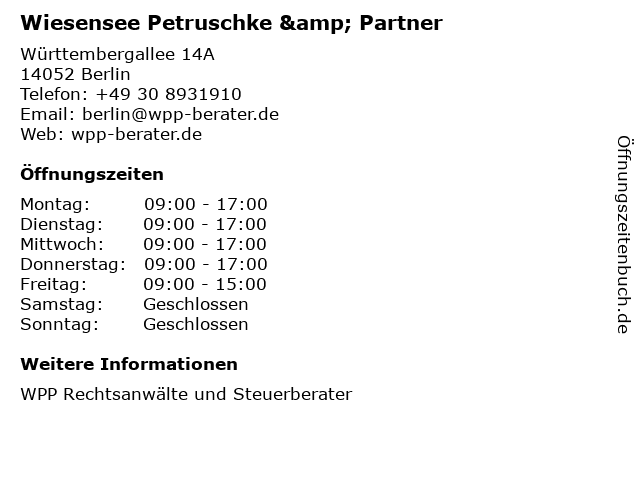 Branchen & Suchbegriffe zu Wiesensee Petruschke & Partner:partner, petruschke, rechtsanwälte, steuerberater, wiesensee |