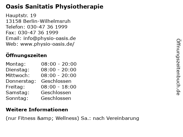Branchen & Suchbegriffe zu Oasis Sanitatis Physiotherapie:krankengymnastik, oasis, physiotherapie, sanitatis |