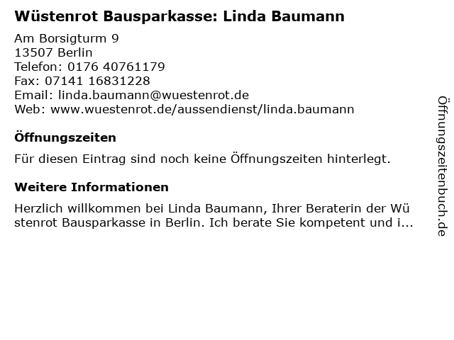 | Wüstenrot Bausparkasse: Linda Baumann anrufen | |