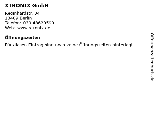 | Öffnungszeiten XTRONIX GmbH in Berlin anzeigen | |
